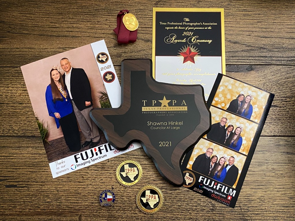 What a night! TPPA Awards Night was a fabulous in-person event complete with many friends and much to celebrate! I was honored to receive my Full Fellowship and my commemorative plaque for being on the 2021 Executive Council. I was also recognized as a Gold Medalist for my images at the annual Print Competition, where 6 of my images received Merits and 2 received the new Texcellence Award. 🙂