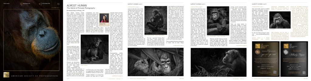 Published! I wrote an article about my primate photography that has been featured in the Winter 2024 issue of “ASP Magazine”. I even made the cover! I hope you enjoy it! 😊